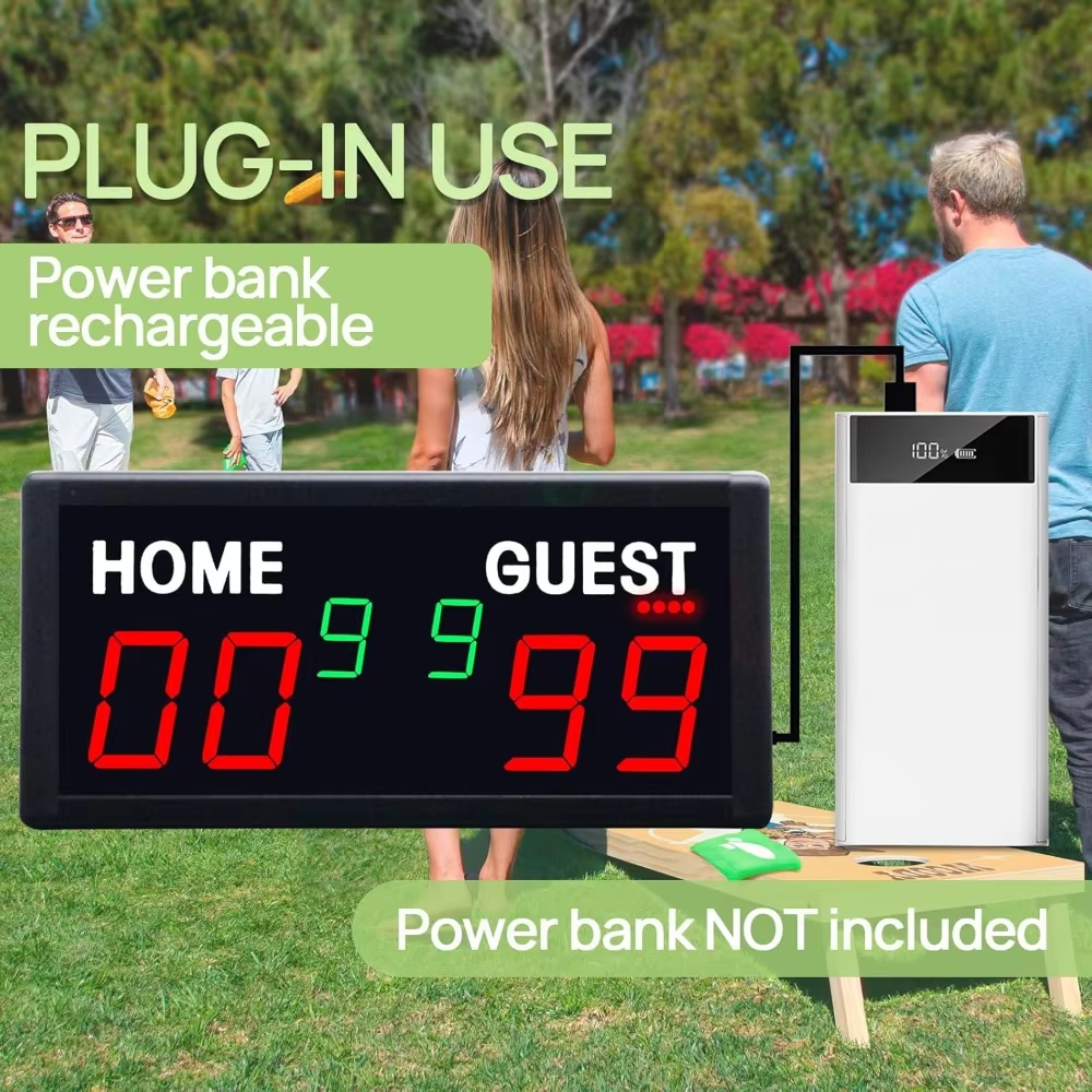 Compared to a regular scoreboard, the biggest advantage of this Electronic Scoreboard is that you can easily operate it via Bluetooth or remote control. No more writing down scores or memorizing them verbally. Just press a button, and your score will be updated. Whether you are playing baseball or cornhole, scoring has now become extremely easy and fun. The 6 large digits of this Electronic Scoreboard are visible, whether you are playing during the day or at night. The LED display installed in it is extremely bright and power-efficient, which can be easily seen from a distance. Due to this, this board gives the same feel as a professional league. In addition, this Electronic Scoreboard is completely portable. You can easily take it to your home, park, or any playground. Its body is strong, which is not affected by outdoor weather such as sun or light rain. So even if you are tired of playing and have just gone to the room to rest, this product can withstand all weather conditions.