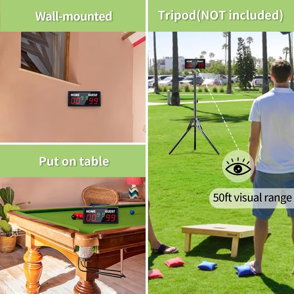 6 Large LED Digits: Day or night, every score is clearly visible.