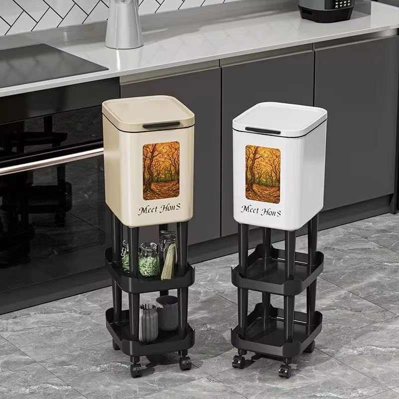 + Free ShippingTransform your kitchen: Hot Selling Latest Products 2025 Kitchen Trash Can Simple Rolling Rack Storage Shelf